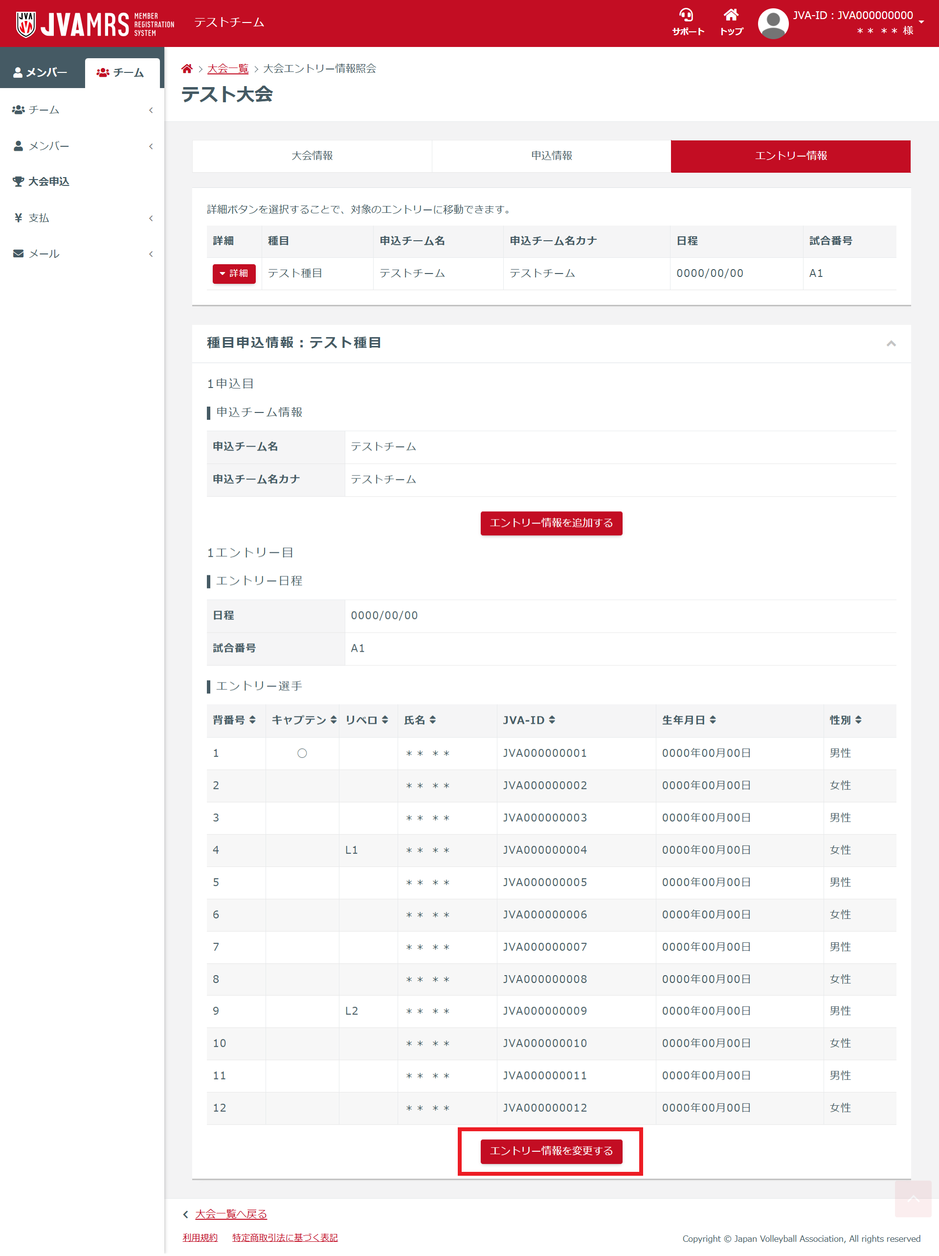 7.大会エントリー情報の変更が完了します。